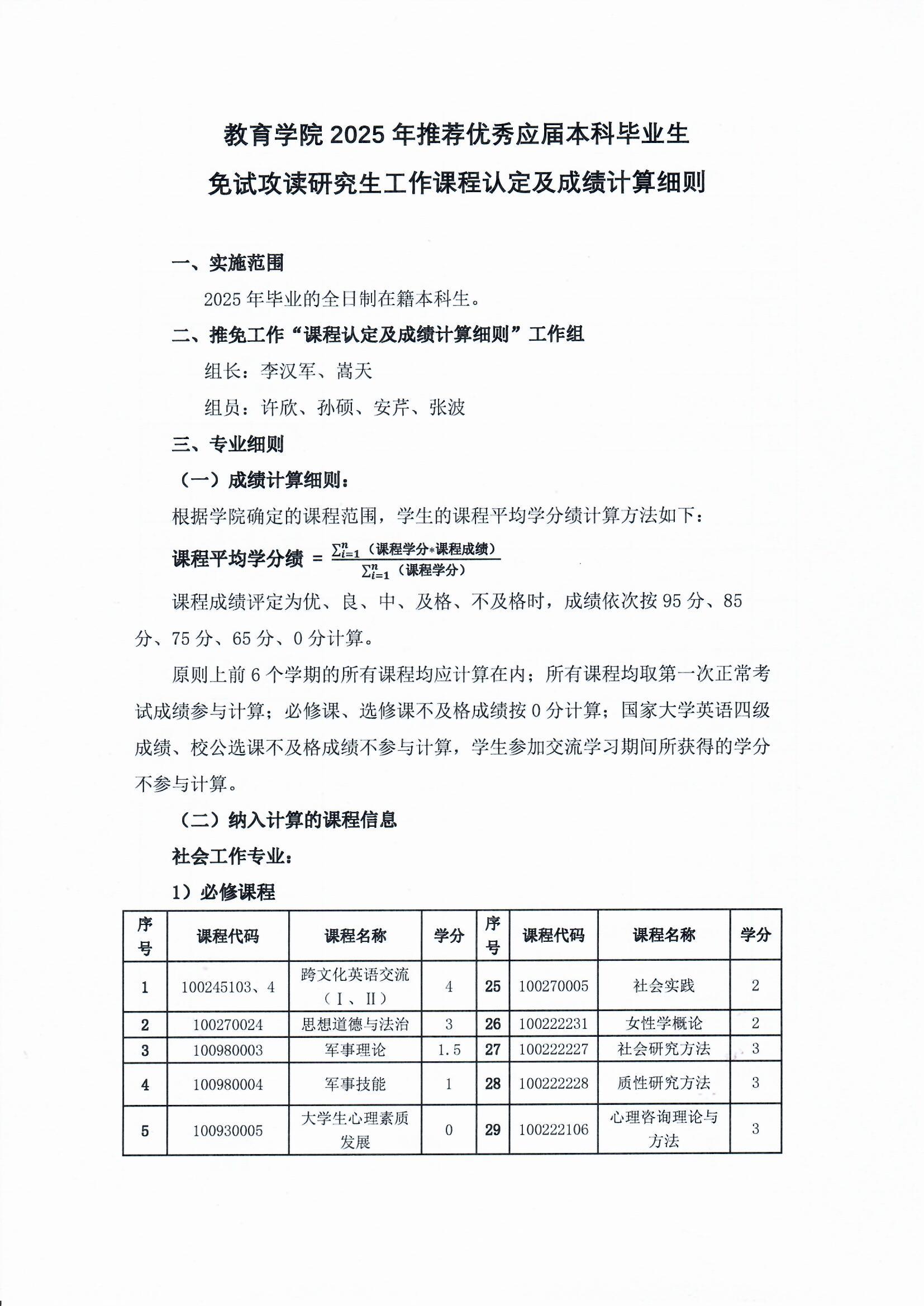 必威西汉姆联2025年推荐优秀应届本科毕业生免试攻读研究生工作课程认定及成绩计算细则
