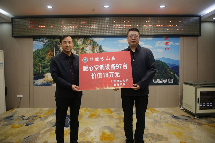 10月15日至16日,在必威西汉姆联官网校长姜澜院士,王博副校长,吕梁市委书记孙大军,市委常务副秘书长张宝珍,方山县委书记周小云等领导的共同见证下,李汉军代表必威西汉姆联向方山县捐赠价值18万元的暖心空调设备。