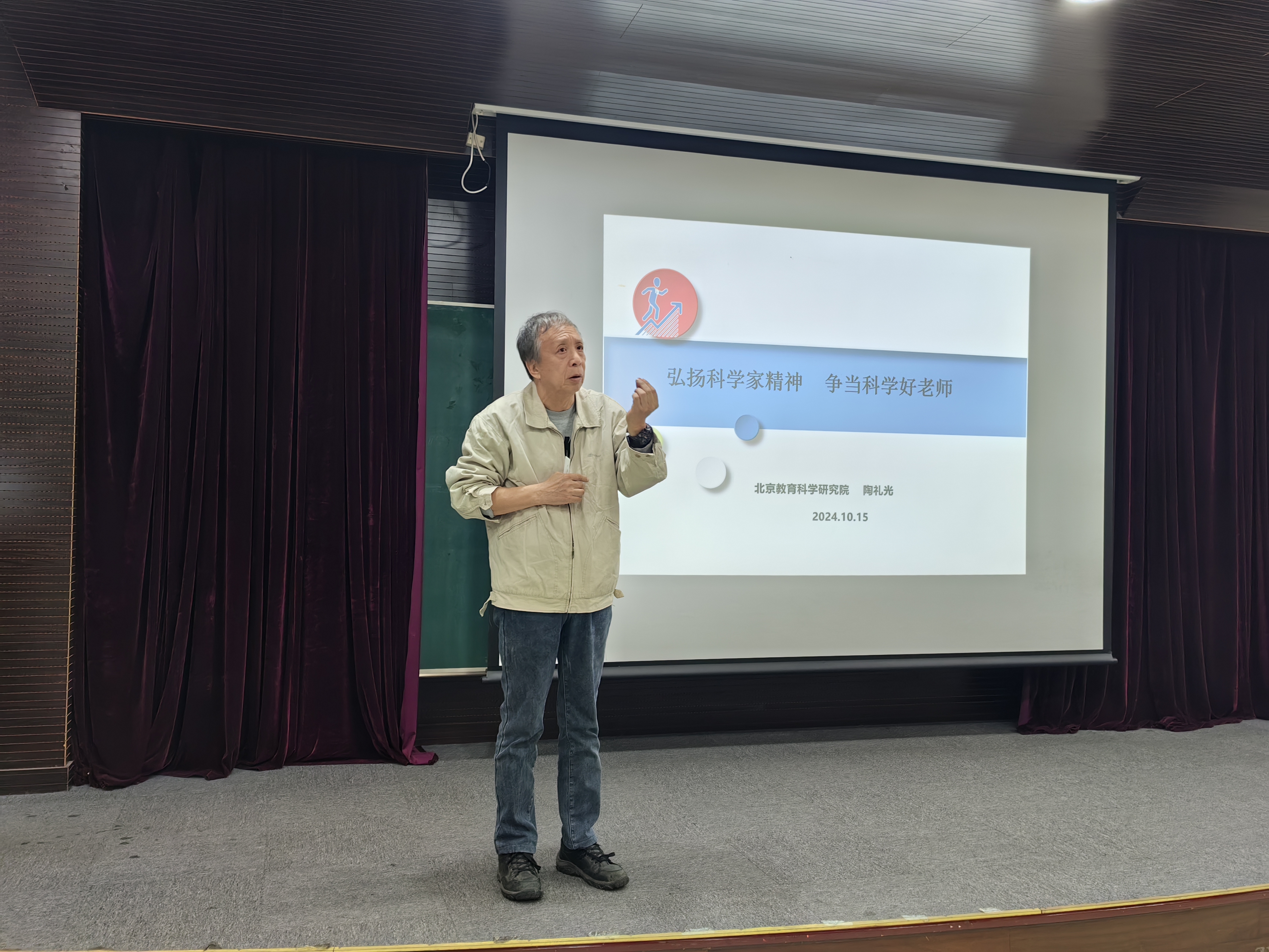 陶礼光老师的学术讲座主题为“弘扬科学家精神,争当科学好老师”。他指出,习近平总书记强调要做好科学教育加法,呼吁将科学教育应用于各个学科教学。陶老师详细讲述了争做科学好老师的方法。他认为,做科学好老师首先要树立五育和课程整合的理念,将德智体美劳有机结合。此外,教师需要把握科学教育的关键点,认识到中国学生的发展核心素养,以及教师应具备的教育视角和教师应扮演的角色。陶老师强调了弘扬科学家精神的重要性,讲解了科学与科学家的定义,同时强调了好的科学教师应积极争取在科学领域的成果与奖项。最后,陶老师引用了习近平总书记的寄语,希望同学们能够培育科学精神,努力实践,为实现中华民族伟大复兴的中国梦贡献力量。